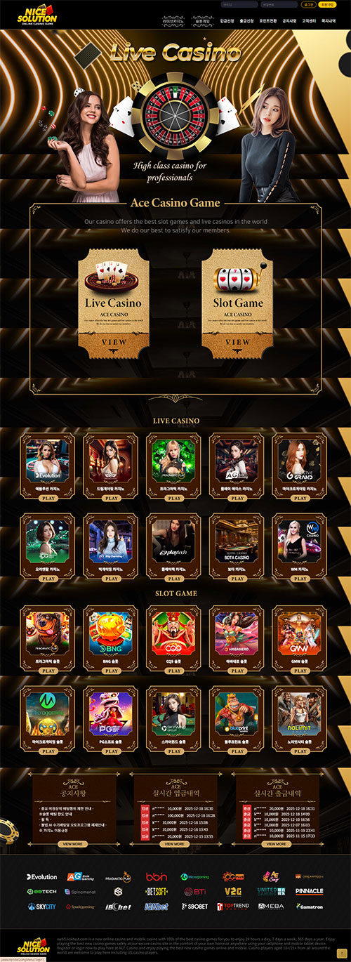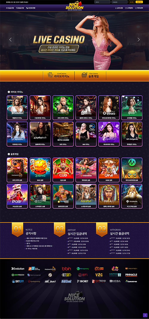 나이스카지노솔루션은 안정성과 전문성을 모두 갖춘 온라인카지노 솔루션 업체 입니다.